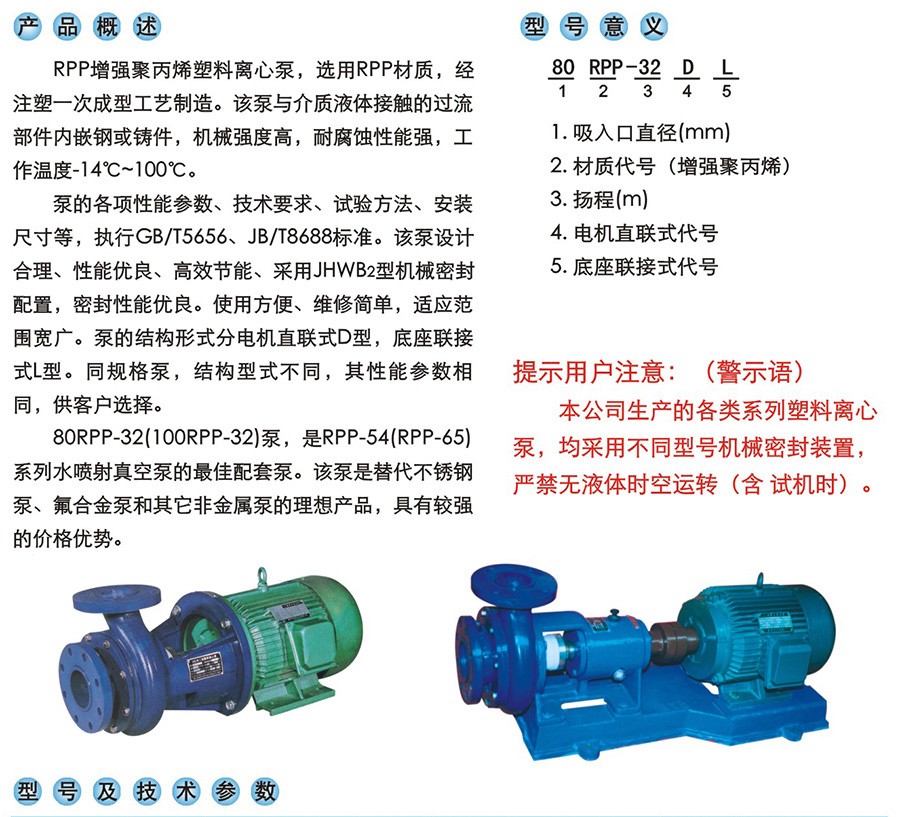 RPP增强聚丙烯塑料离心泵